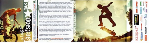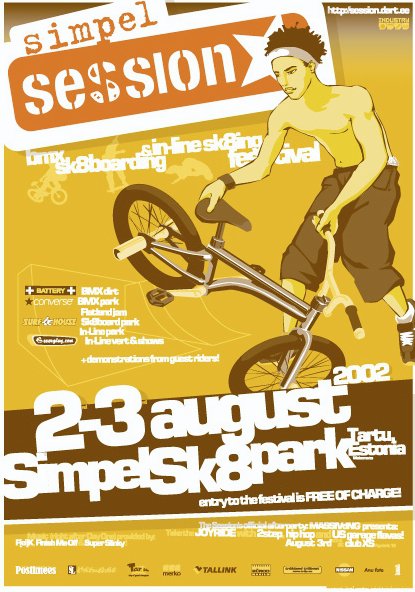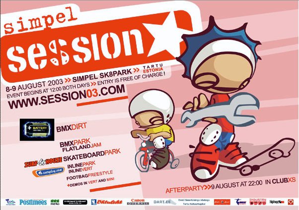 Simple Session on alati äge välja näinud, no doubt. Ilmselt sellel teemal mõne Mustamäe Statoili taga vaidlusi ei teki – kõik on nõus. Sellised asjad juhtuvad tavaliselt siis, kui lähedal on andekad inimesed. Simple Sessioni üks eestvedaja Risto Kalmre on just täpselt seda. Ta on suur ühe mehe bänd, kes orkestreerib lisaks ürituse toimumisele ka ürituse visuaalset kommunikatsiooni. Ja orkestreerimise all ei pea me silmas seda, et ta suhtleb disainiagentuuri projektijuhiga, vaid seda, et ta ise joonistab kõik vajaliku. Vahel üksi, vahel Pent Talveti ja Jan Tomsoni abiga, aga alati nö in house. Mäletan väga hästi Sessioni algusaegadest graffiti üksust nimega D-ART. Yep, he is the one! Siin, nüüd ja praegu avaneb meil võimalus linnulennult vaadata Simpel Sessioni graafilisi identiteete läbi aastate. Korralik nostalgia litter nädalavahetuseks in the bag.